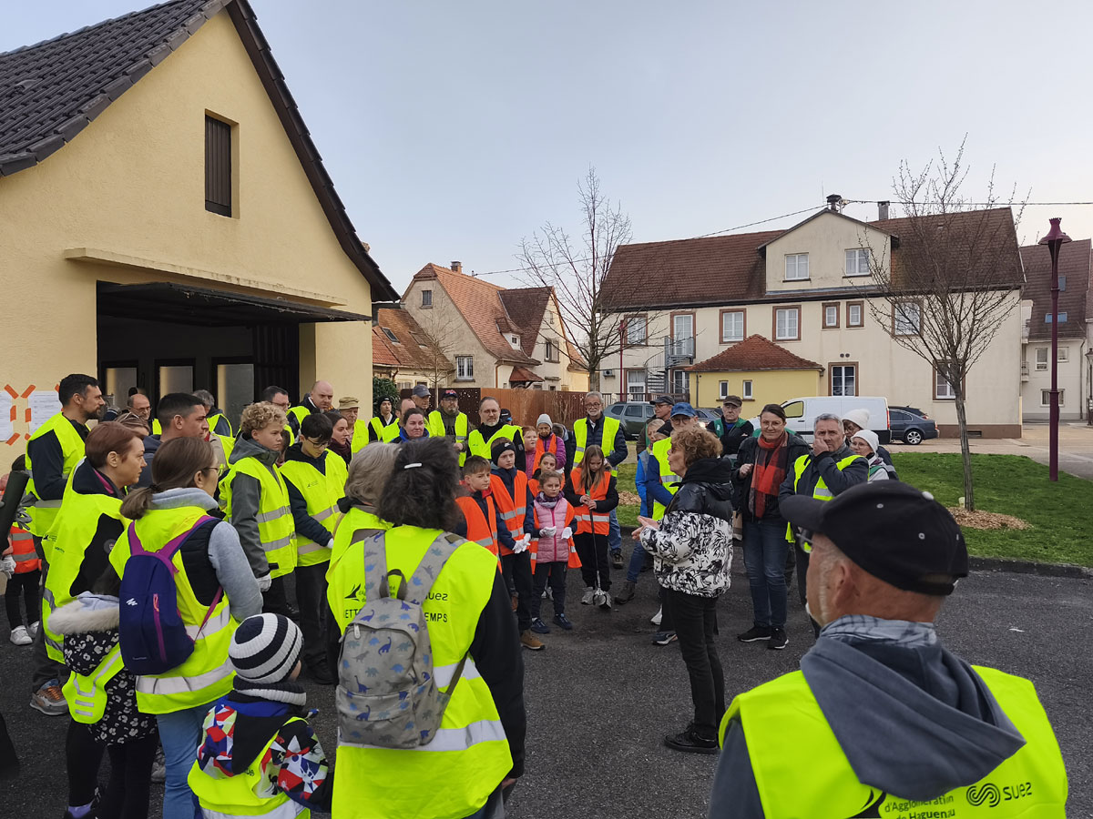 Ensuite, les courageux, réunis en petites brigades sous la conduite d’un conseiller municipal, équipés de bottes, gants, seaux, sacs-poubelles et gilets fluorescents, se sont rendus sur les différents sites pour procéder au nettoyage des abords de Kaltenhouse, passant le terrain au peigne fin. Les déchets plastiques et autres détritus ramassés en nombre ont été collectés par l’équipe volante formée des agents techniques pour être déposés dans une benne mise à disposition par les services de la CAH.
